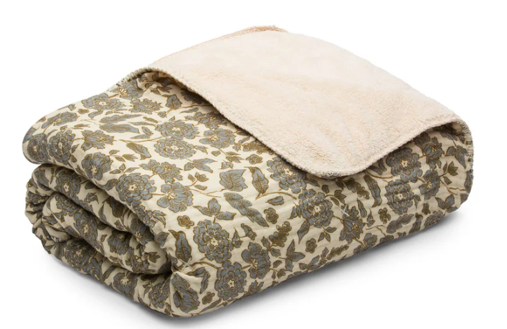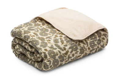 Floral Sherpa Two-Sided Blanket - Teal/Green